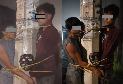 Los dos jóvenes sospechosos fueron llevados a un poste de concreto, donde permanecieron atados durante cerca de una hora, mientras otros vecinos vigilaban la escena.