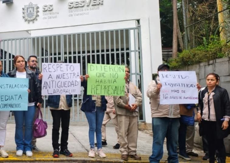Xalapa, Ver., 10 de abril. — Un grupo de extrabajadores de los Servicios de Salud de Veracruz (Sesver) tomó este viernes las oficinas ubicadas en la colonia Progreso, en Xalapa, para exigir su reinstalación laboral, al señalar que fueron removidos de sus funciones sin una causa justificada, pese a contar con varios años de servicio.