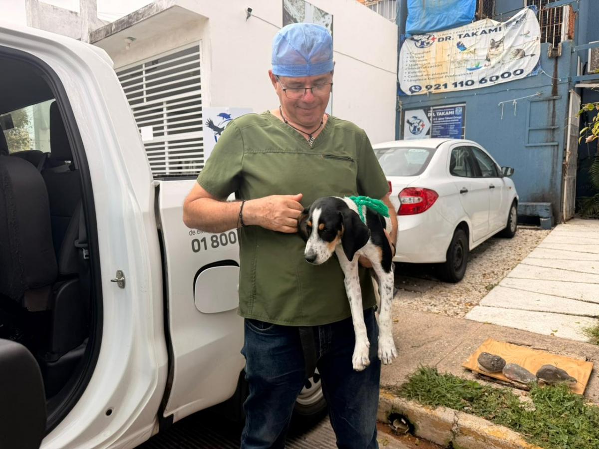 Tras el reporte ciudadano, elementos de Protección Civil rescataron a la cachorra y posteriormente la trasladaron con el médico veterinario Jaime Takami para su valoración médica.