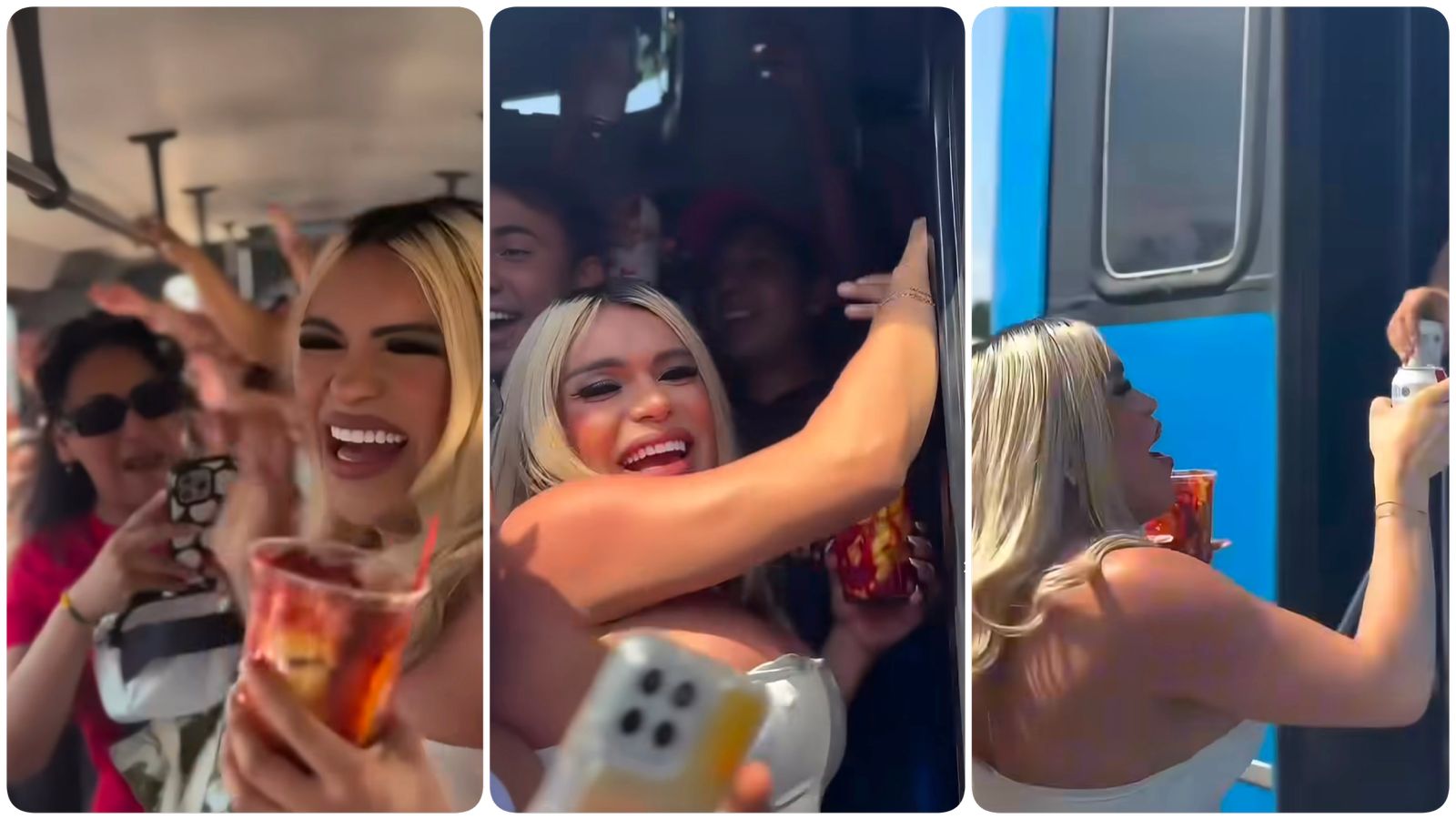 La famosa también fue vista a bordo de un camión urbano. La influencer se subió a la unidad del transporte público para tomarse algunas fotos con sus fans.