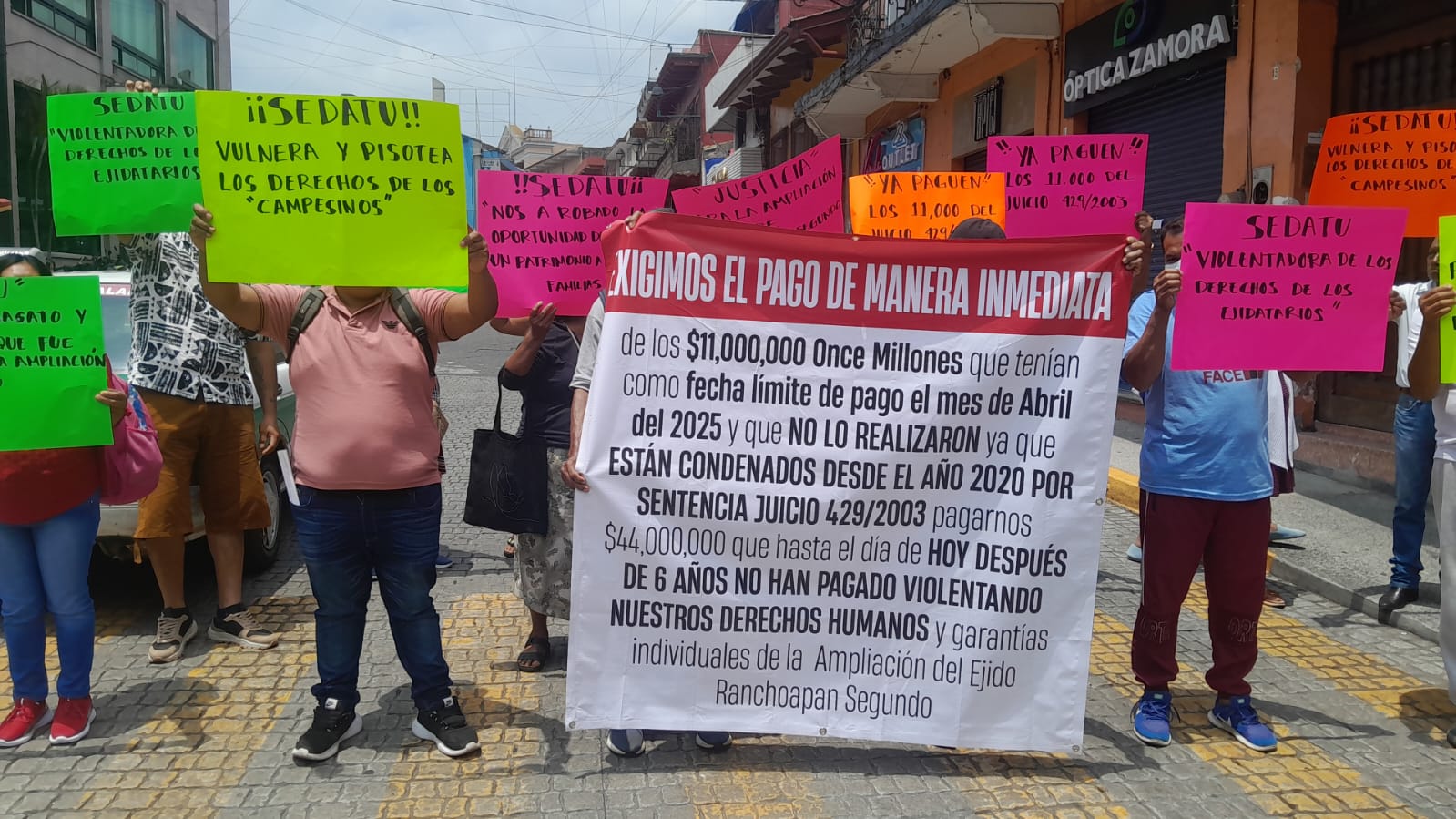 Xalapa, Ver. – Un grupo de ejidatarios de la ampliación Ranchoapan Segundo, perteneciente al municipio de San Andrés Tuxtla, bloqueó la calle Gutiérrez Zamora en el centro de esta capital este jueves 16 de abril. Los manifestantes reclaman un adeudo superior a los 11 millones de pesos que la Secretaría de Desarrollo Agrario, Territorial y Urbano (Sedatu) mantiene pendiente desde hace dos años, afectando directamente el patrimonio de 28 familias campesinas.
