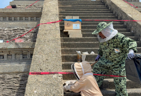 El acceso a la pirámide del malecón de Coatzacoalcos permanece restringido de manera preventiva, en tanto se descarta la presencia de abejas rezagadas, principalmente obreras que salen a recolectar néctar, y se llevan a cabo labores de limpieza en el sitio.